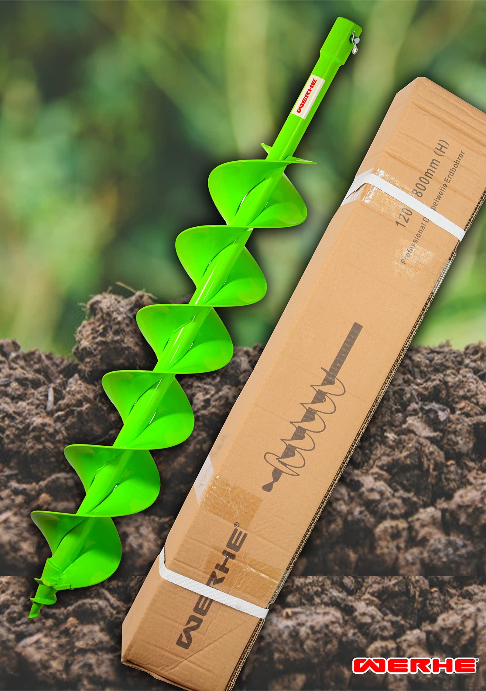 WERHE Doppelwendel Erdbohrer Ø120mm 80cm – Pfahlbohrer mit SDS Plus Adapter – Robust & Präzise